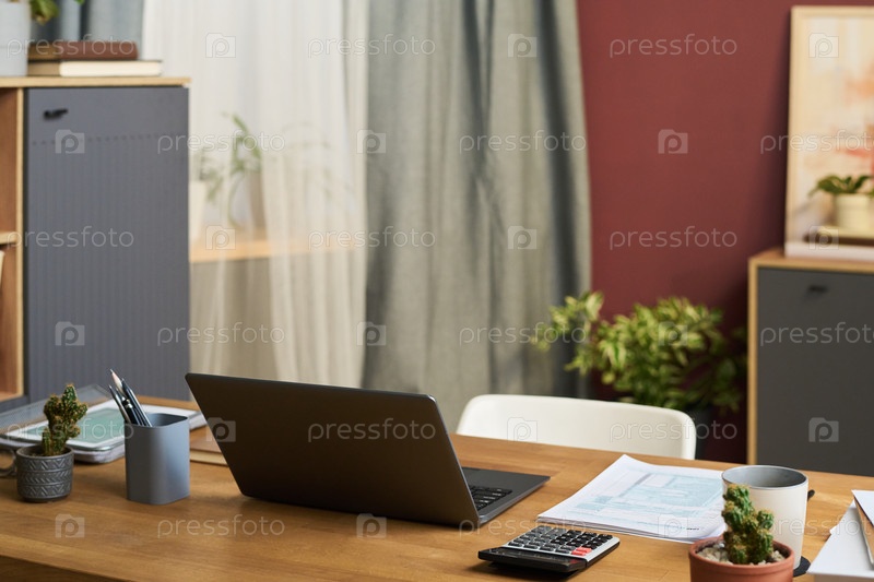 Ноутбук на рабочем столе в домашнем офисе