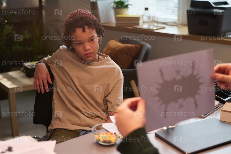 Школьник смотрит на чернильные пятна Роршаха