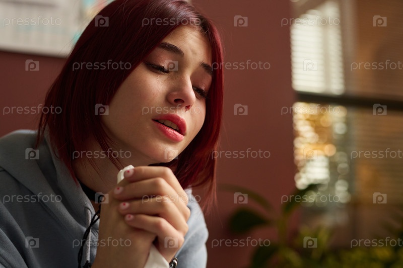 Милая девочка-подросток со слезами на лице