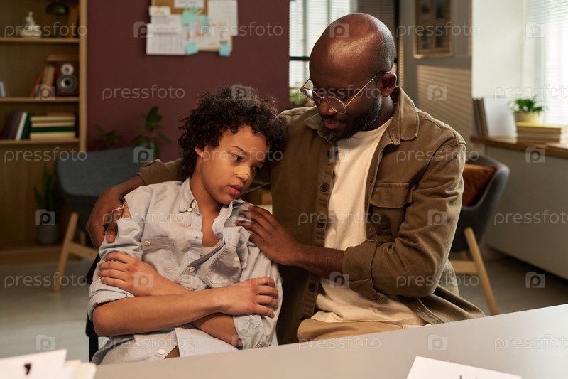 Утешать сына на психологической сессии