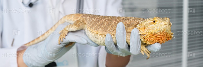 Милая Ящерица в Ветеринарии Руки Заголовок
