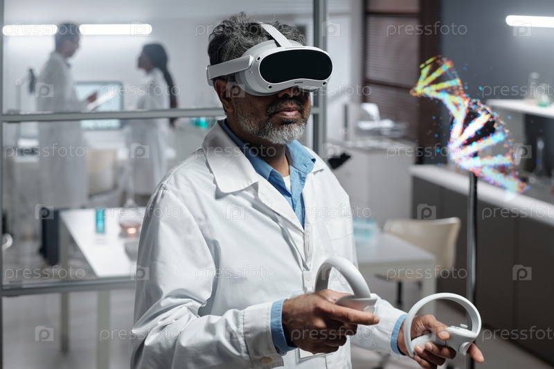 Ученый использует гарнитуру виртуальной реальности в лабораторных условиях