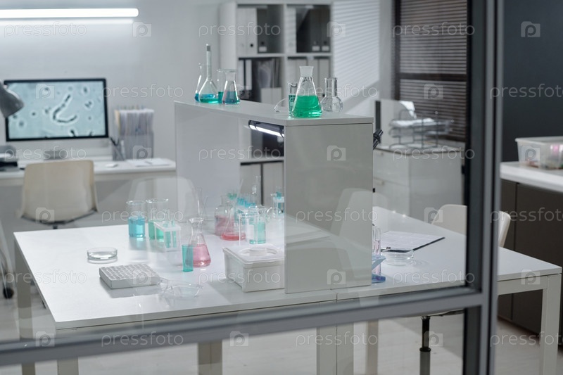 Наблюдение за лабораторным оборудованием и химическими стаканами на столе