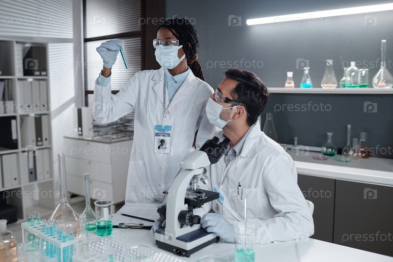 Исследователи анализируют химические образцы в лаборатории