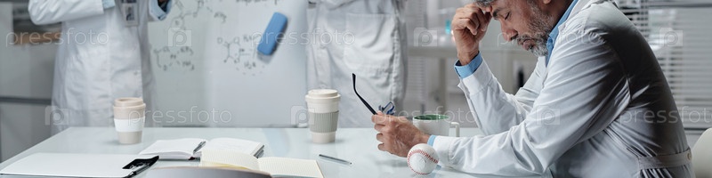 Созерцание медицинского специалиста, окруженного записками