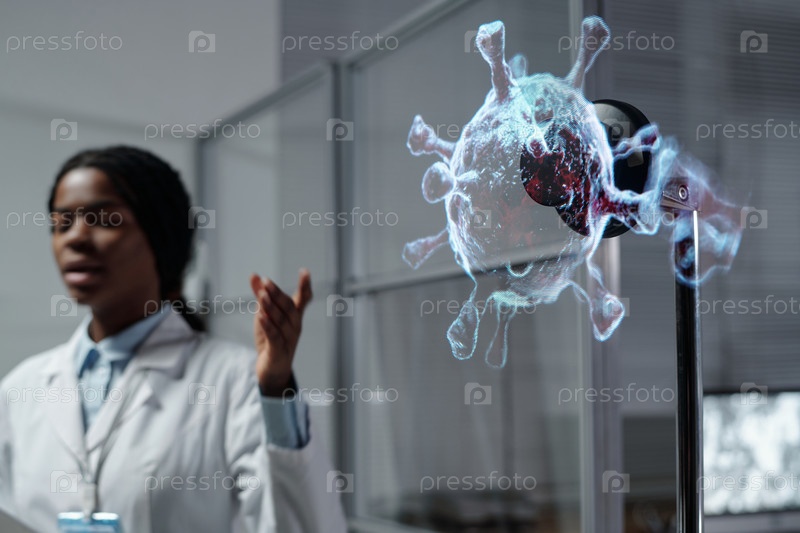 Афроамериканский ученый анализирует медицинскую голограмму