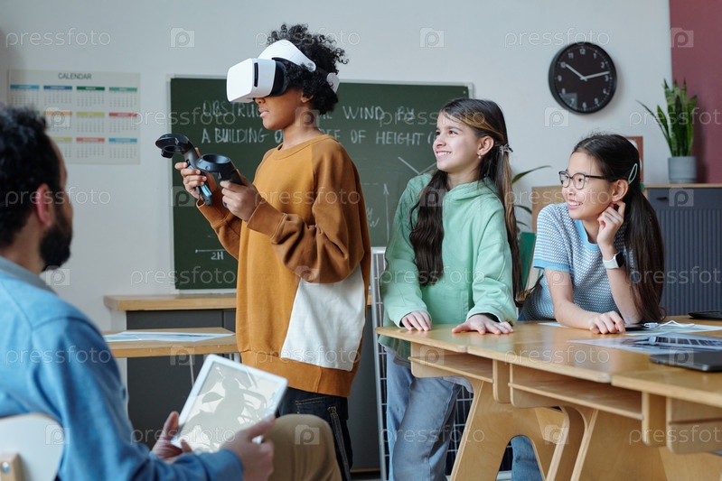 Студенты, испытывающие виртуальную реальность в классе