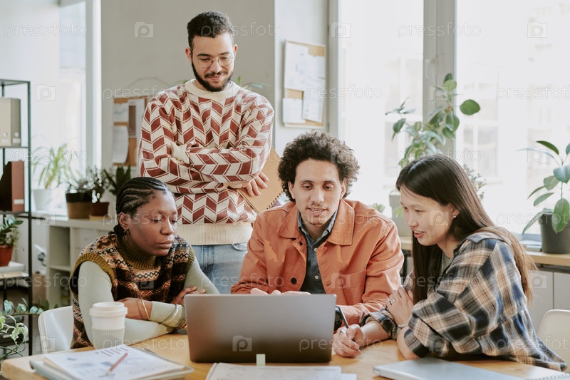 Разнообразная команда, работающая над новым проектом в офисе