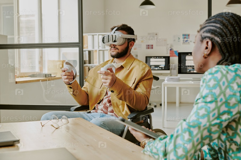 Офисный работник тестирует новые VR-очки