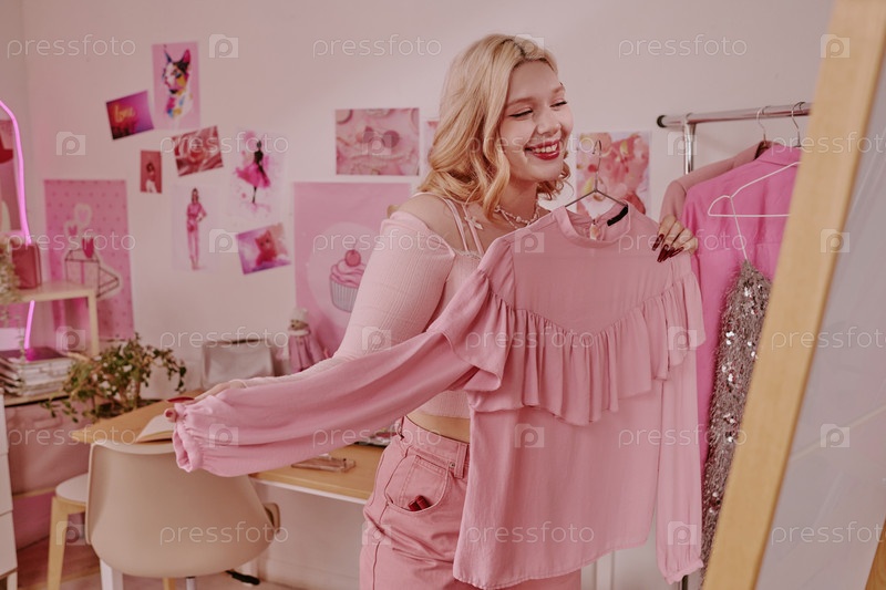 Женщина-подросток восхищается собой в зеркале