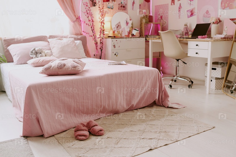 Двухместная кровать в розовой спальне