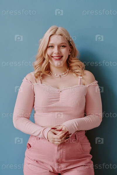 Портрет улыбающейся блондинки-подростка