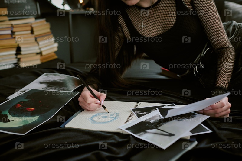 Готический рисунок черепа в постели