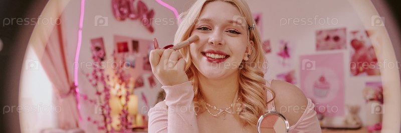 Заголовок с Девушкой, которая наносит макияж