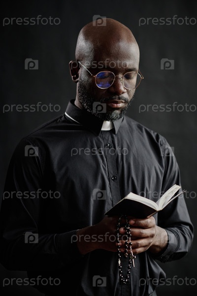 Молодой священник внимательно читает Библию