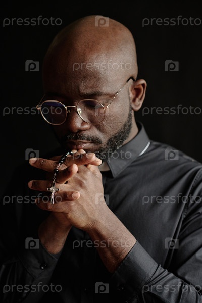 Молодой пастор молится в темной комнате
