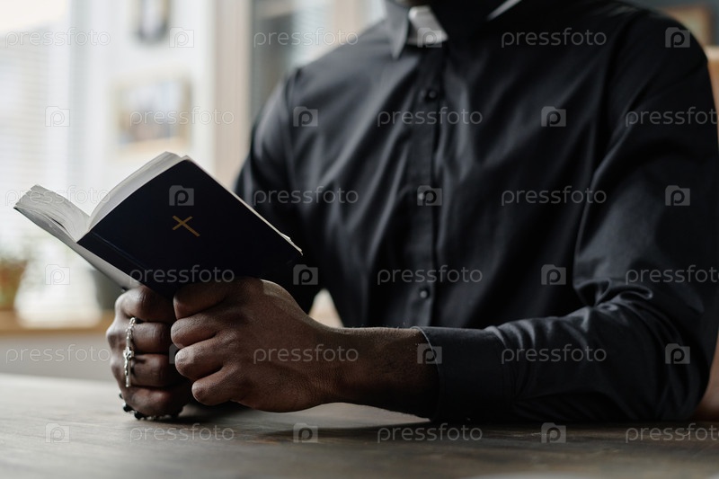 Непризнанный мужчина, держащий Библию за руку