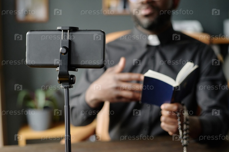 Черный смартфон записывает неузнаваемого пастора