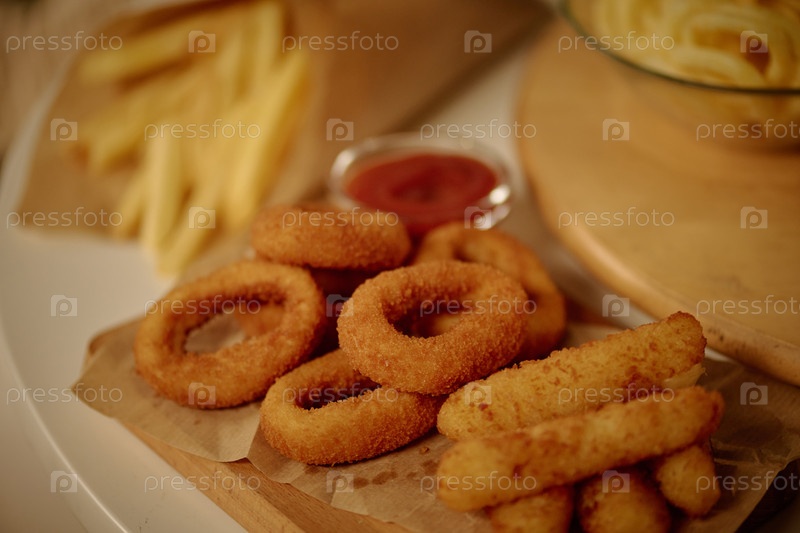 Наслаждаясь вкусной тарелкой жареных закусок на деревянной доске