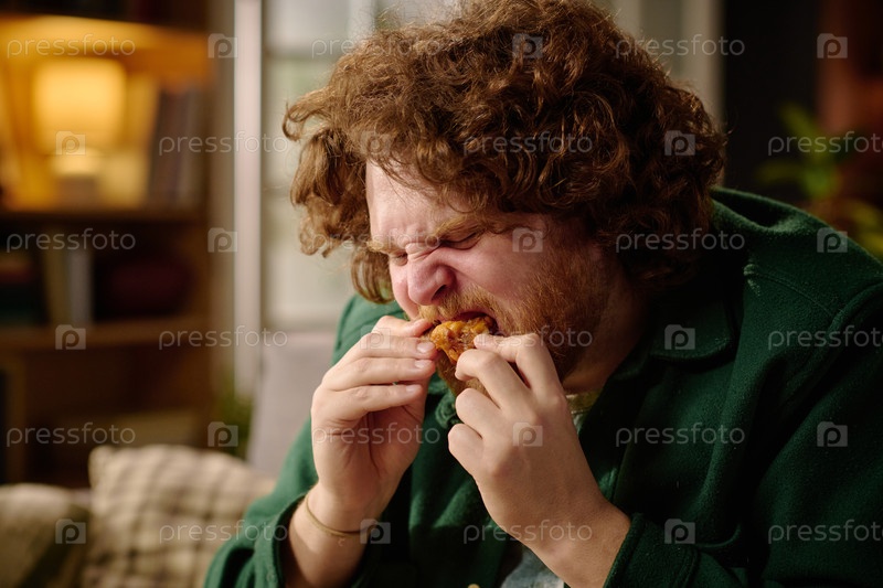 Наслаждаясь едой хрустящей жареной курицы в помещении