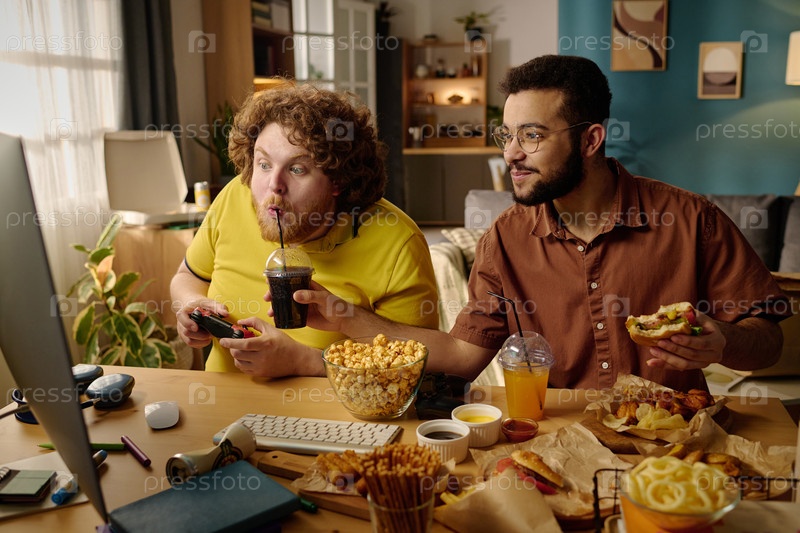 Друзья смотрят фильмы и едят закуски дома