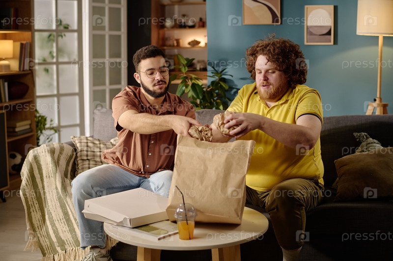 Разгрузка доставки еды в уютной домашней обстановке Друзья