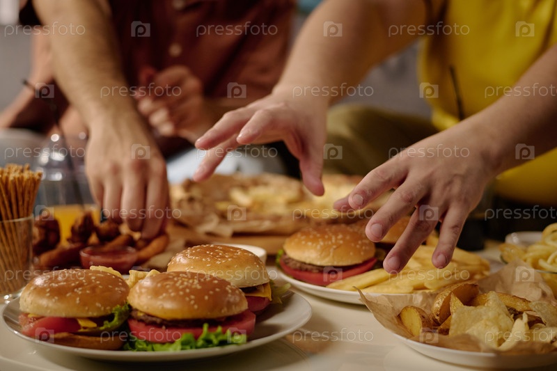 Наслаждаться бургерами и чипсами с друзьями в помещении