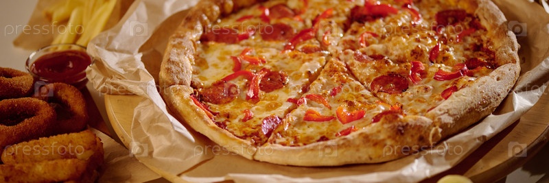 Пицца Пепперони с луковыми кольцами и картофелями