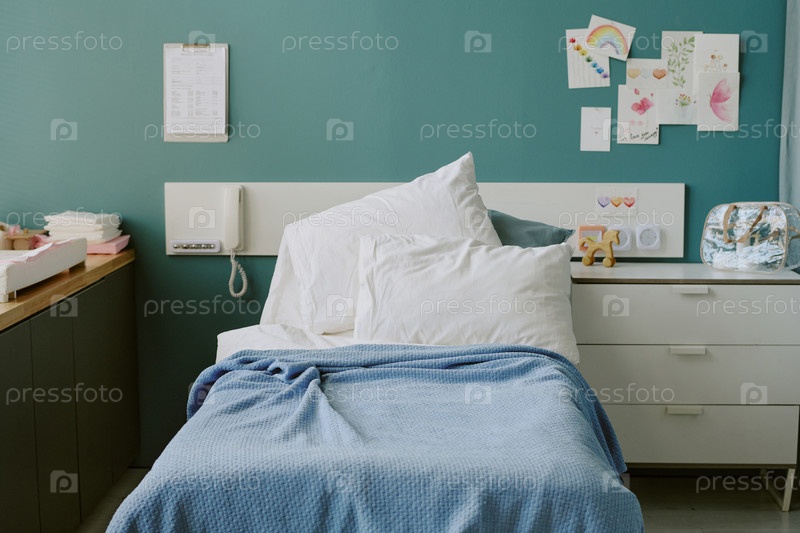 Уютный больничный номер с кроватью и красочным стеновым декором