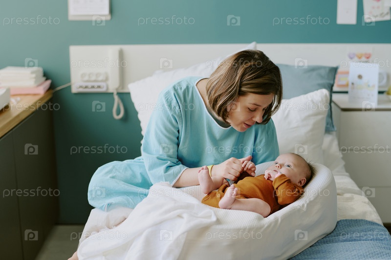 Мать ухаживает за ребенком в больничной постели, заботясь о маме Сцена любви