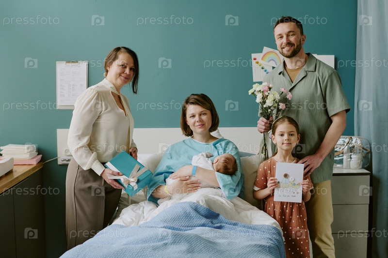 Празднование прибытия новорожденного с счастливым семейным моментом