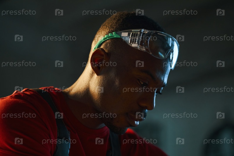 Афроамериканский рабочий, работающий на фабрике