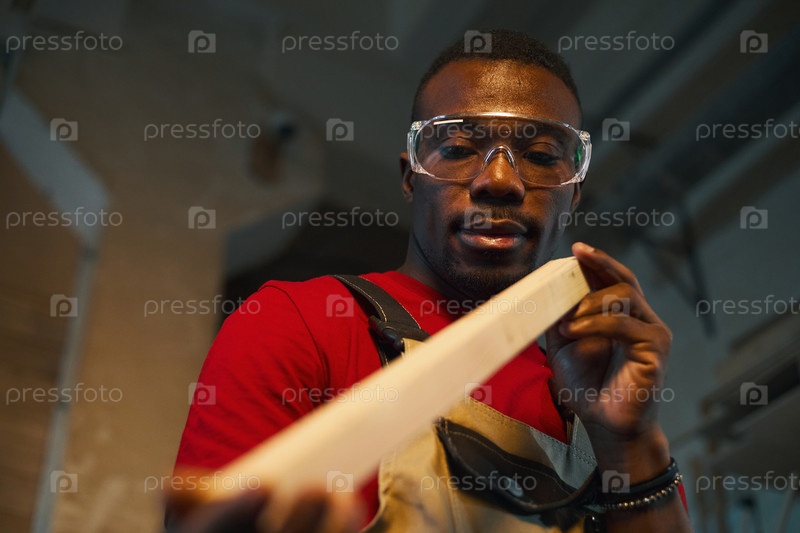 Плотник, осматривающий деревянные детали после пилы