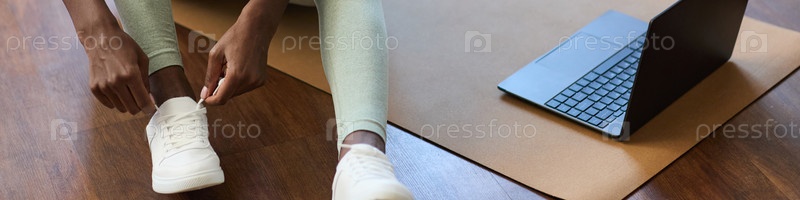 Завязывание шнурков во время подготовки к тренировке