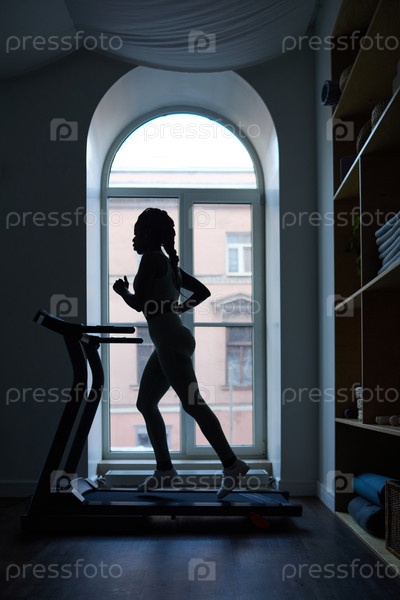 Упражнения на беговой дорожке перед большим окном
