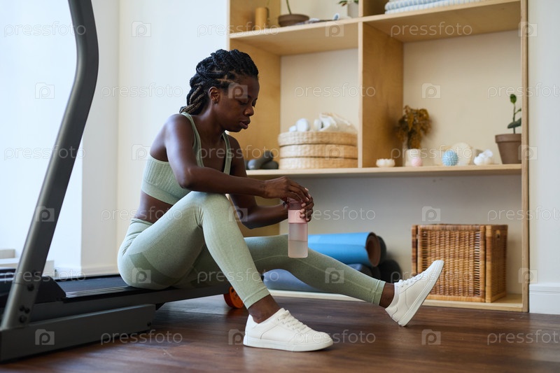 Отдых на беговой дорожке и питьевая вода в спортзале