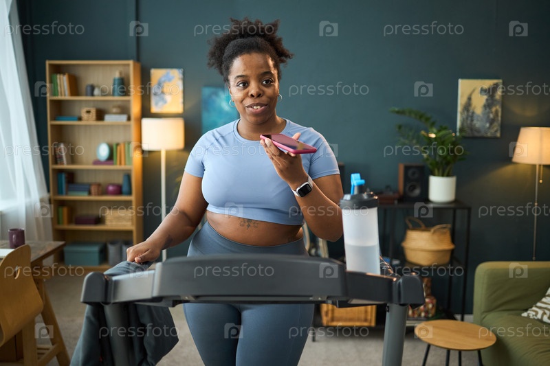 Портрет женщины, занимающейся на беговой дорожке дома