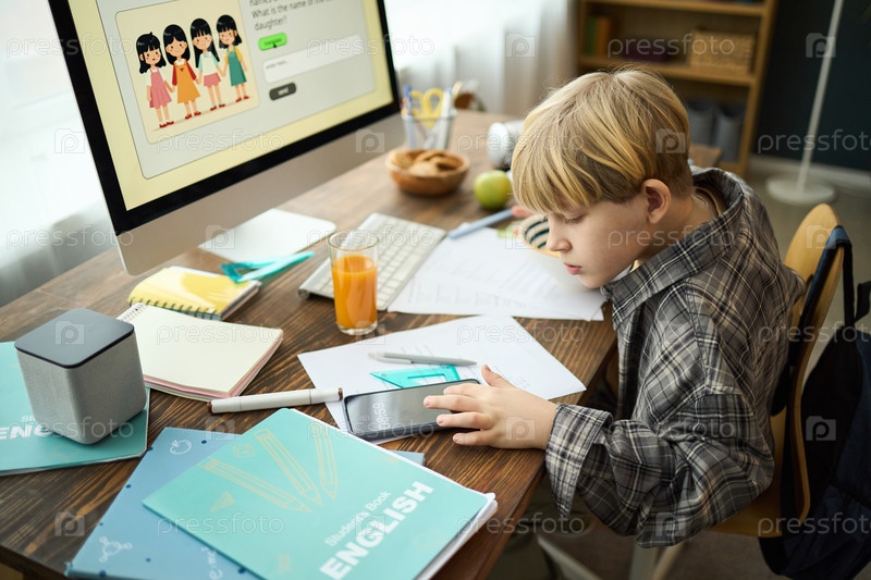 Мальчик, изучающий образовательные технологии в домашней обстановке