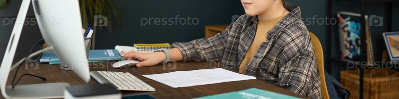Учеба за столом с экраном компьютера и открытой книгой