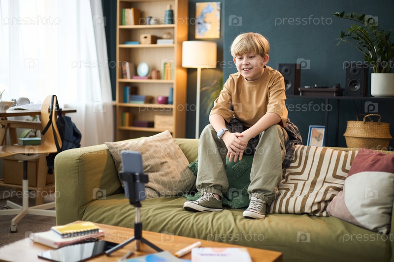 Мальчик, сидящий на диване в уютной гостиной