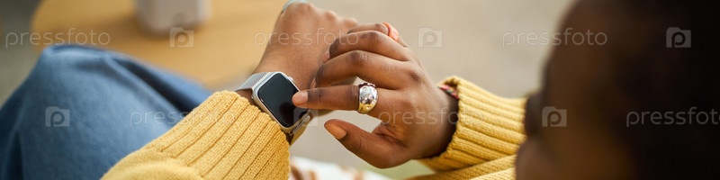Проверка времени на смарт-часах во время сидения в помещении