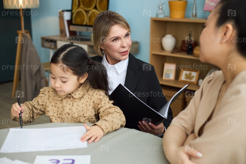 Ментор направляет ребенка в гостиной