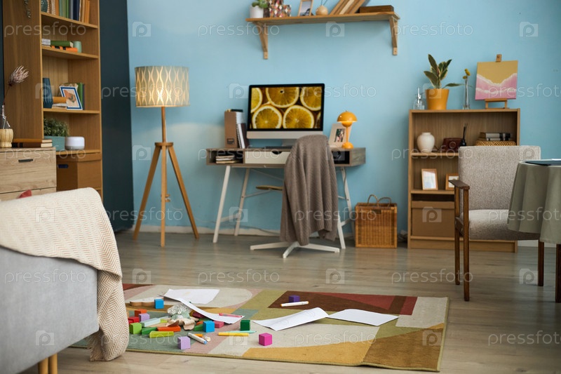 Уютная гостиная с настройкой домашнего офиса