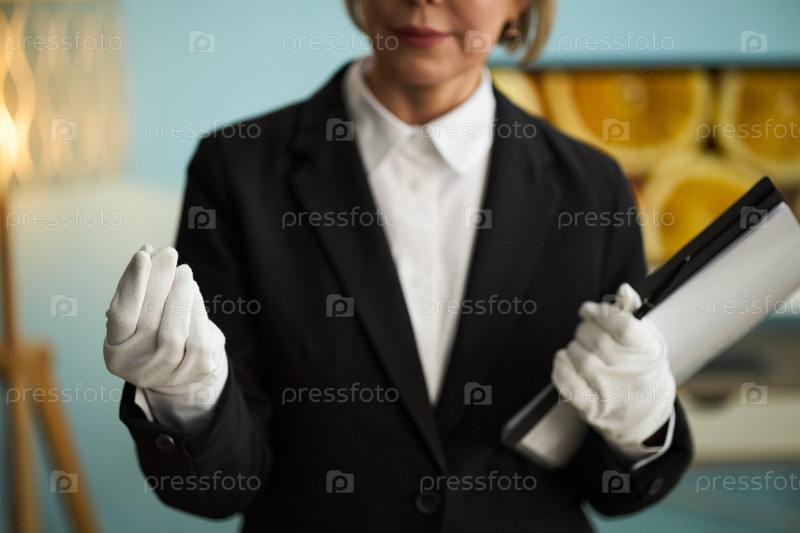 Женщина-опекун с перчатками, держащая документы