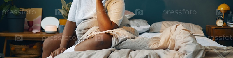 Расслабляющее утро в спальне с уютной кроватью и декором