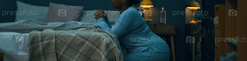 Молитвы рядом с кроватью в уютной темно освещенной спальне