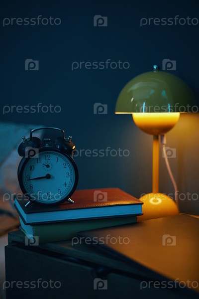 Просвещенный винтажный будильник на придомовом столе