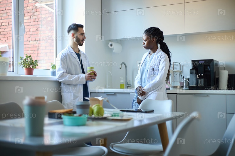 Обсуждение исследований в современном медицинском кабинете с коллегой
