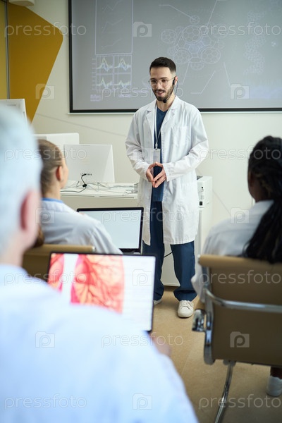 Медицинский профессионал проводит образовательный семинар в лаборатории