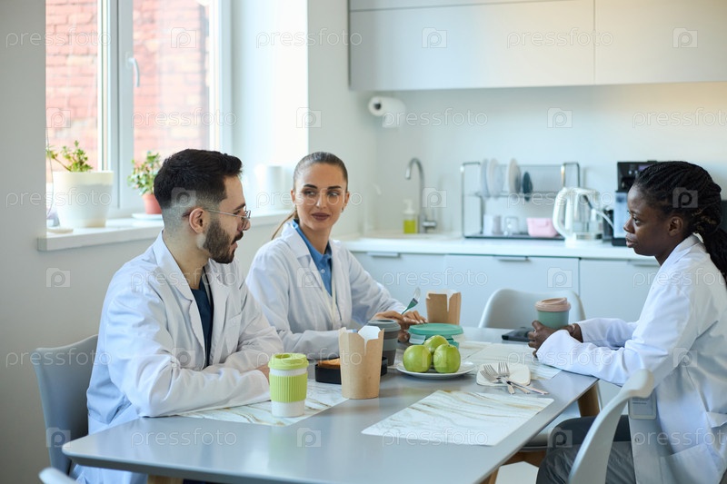 Медицинские работники ведут беседу в комнате отдыха